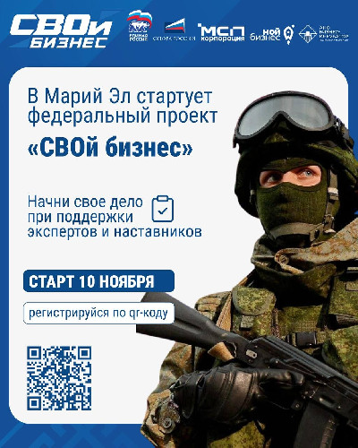В Марий Эл с 10 ноября стартует федеральная программа «СВОй бизнес» — реальный шанс начать собственное дело с поддержкой государства